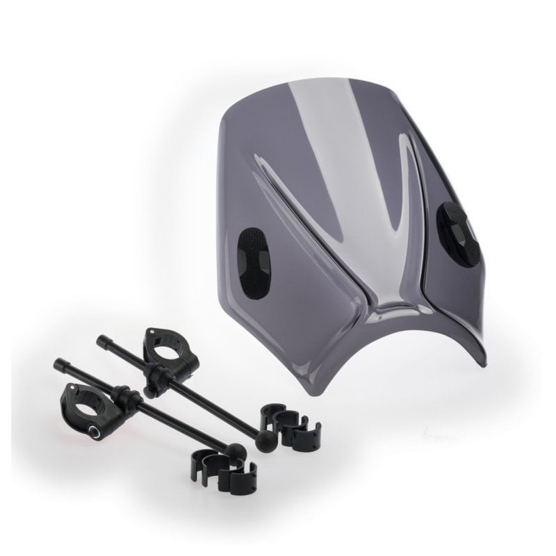 Note: the windscreen can be universally mounted (on the handlebars with clamps or with brackets on the fork), though adjustments may be required depending on the model.
