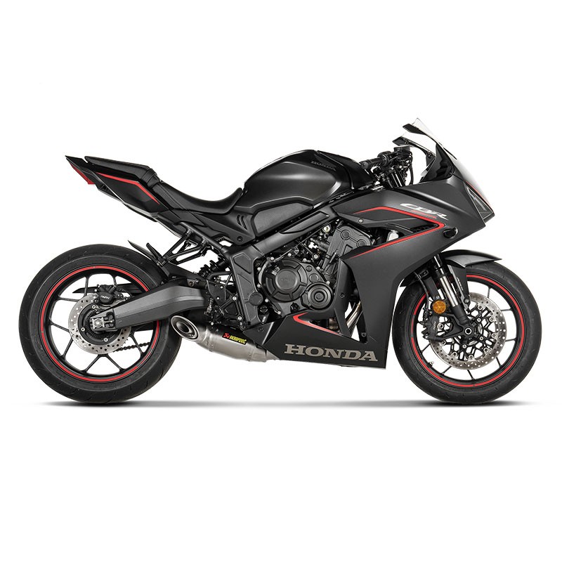Línea completa Racing Akrapovic Titanio para Honda CB650R Neo Sports Café hasta 2024 y CBR650R hasta 2023.